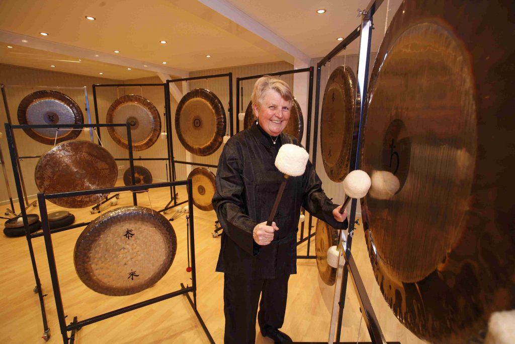 Renate Neumann, Gongspezialistin, seit 1989 Gongseminare für Pädagogik, Therapie und Musik. Gongkonzerte. Aufenthalt und Weiterbildung in Java und Bali, Indonesien, China und Tibet